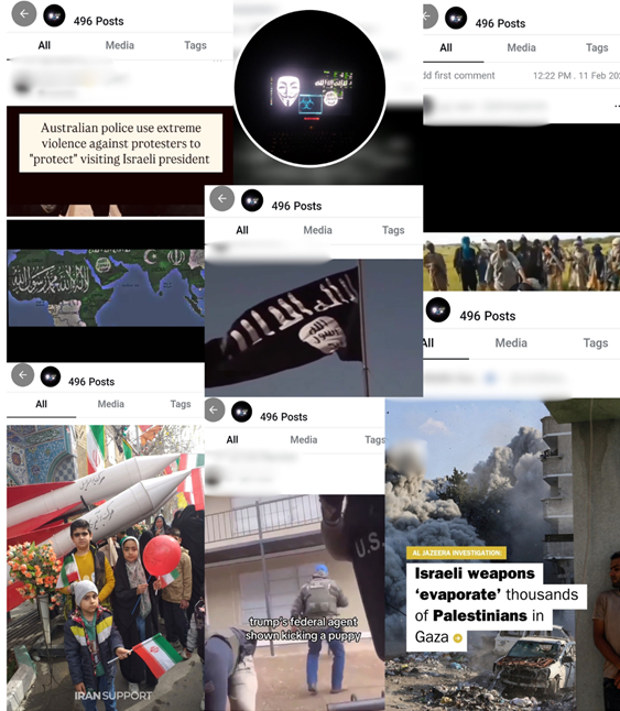 Note. Single account content collected through qualitative monitoring on UpScrolled on 10 February 2026 by Sam David. Content embedded overt TVE content (Islamic State) within broader protest discourse.