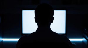 anonymous-person-silhouette-working-on-computer-screen-in-dark-room-photo