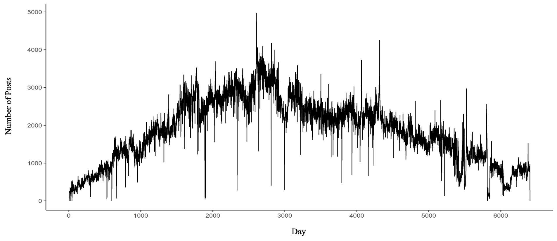 This suggests that there is a link between the general political climate, the current administration, and posting activity of the extreme right on Stormfront. While this finding aligns with empirical studies that have measured the impact of key social events on hateful sentiment and activity of the extreme right online, whether it is the impact of trigger events or U.S. presidential elections, this is a noteworthy finding because, despite the fact that posting activity on Stormfront has been decreasing for quite some time (see Figure 3), forum users in our study were responsive to two opposite events that produced similar results. On the one hand, when presidential candidates (e.g., Trump) make political claims that are in support of the views of the online users, they may collectively believe that their viewpoints are not at the fringes and may feel empowered. On the other hand, when candidates (e.g., Obama) make political claims divergent from the views of online users, they may feel marginalized and express the need to mobilize against the perceived threat. But regardless of each event, in response to each election, Stormfront users melded together for the purpose of collective action.
